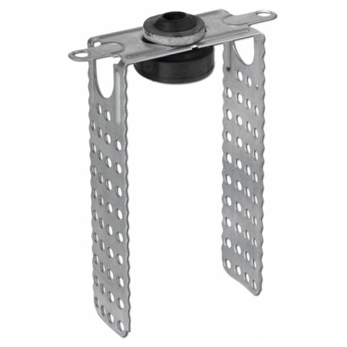 П-образный антивибрационный подвес предназначен для крепления металлических профилей к несущим основаниям с одновременным снижением передачи вибраций и шума. Применяется при монтаже гипсокартонных конструкций, подвесных потолков и облицовки стен, где важна дополнительная звукоизоляция.